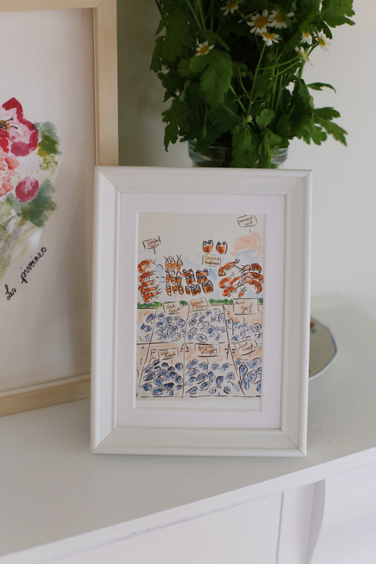 Illustration « Le marché aux poissons » — impression d'aquarelle originale