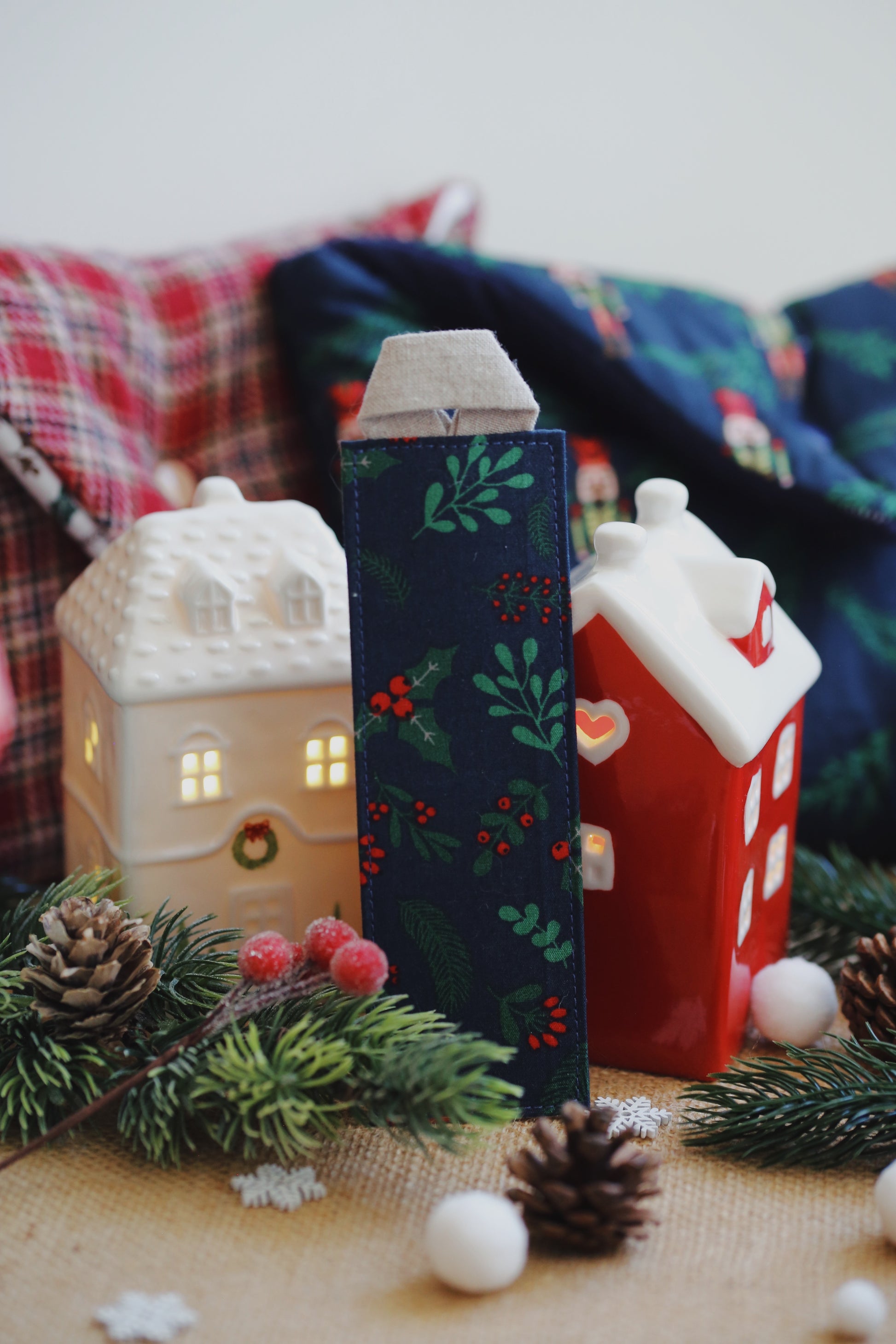 Bookmark made with Oeko-Tex certified fabric. "Holly" print. A fairly stiff paper made in France is sewn inside for better support.