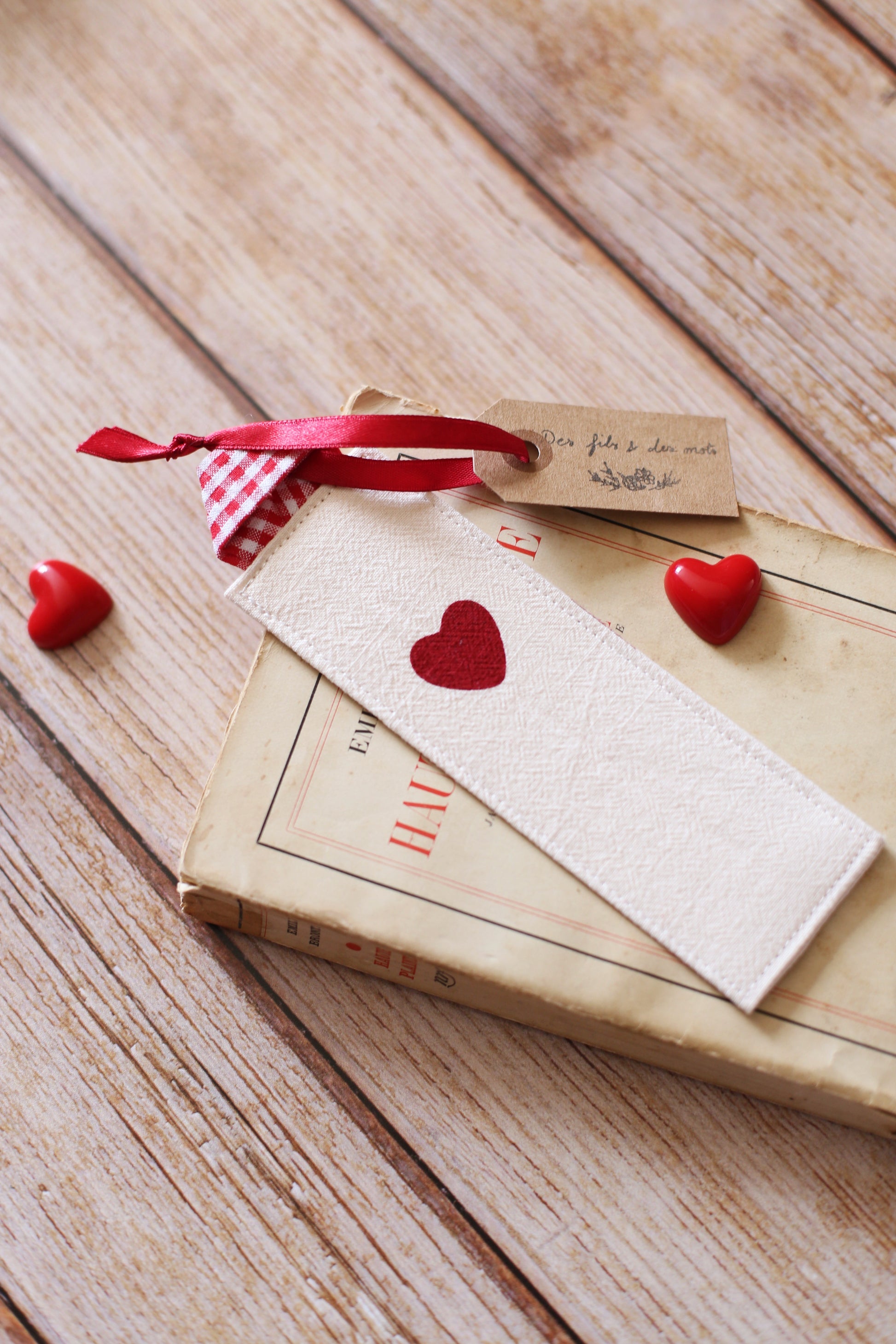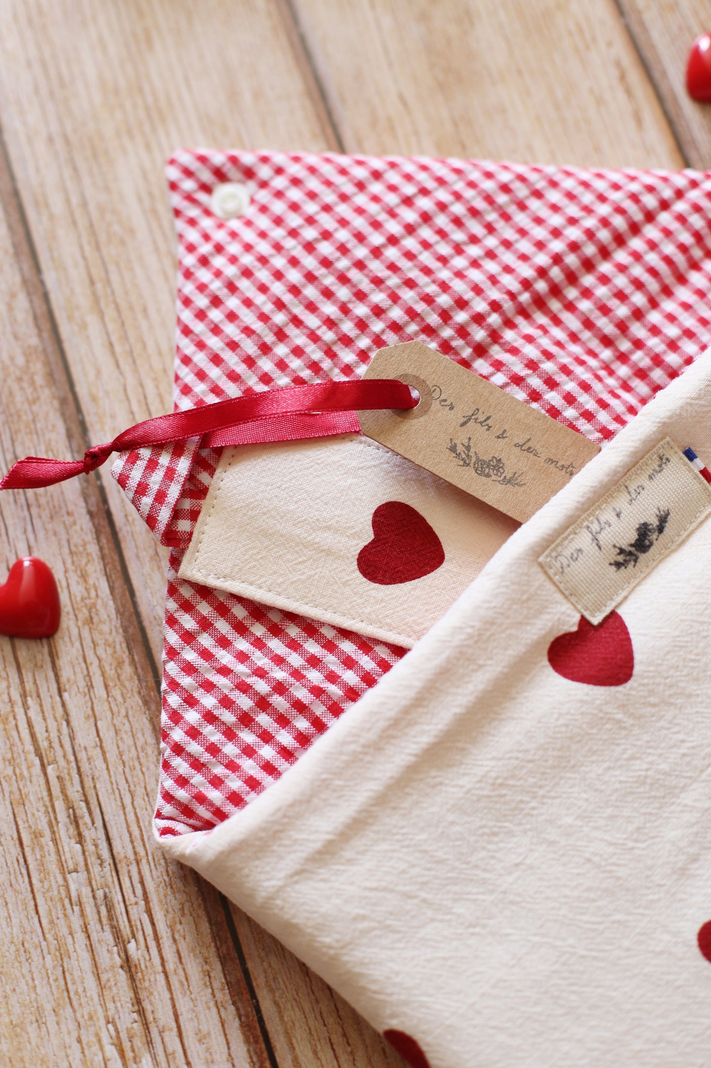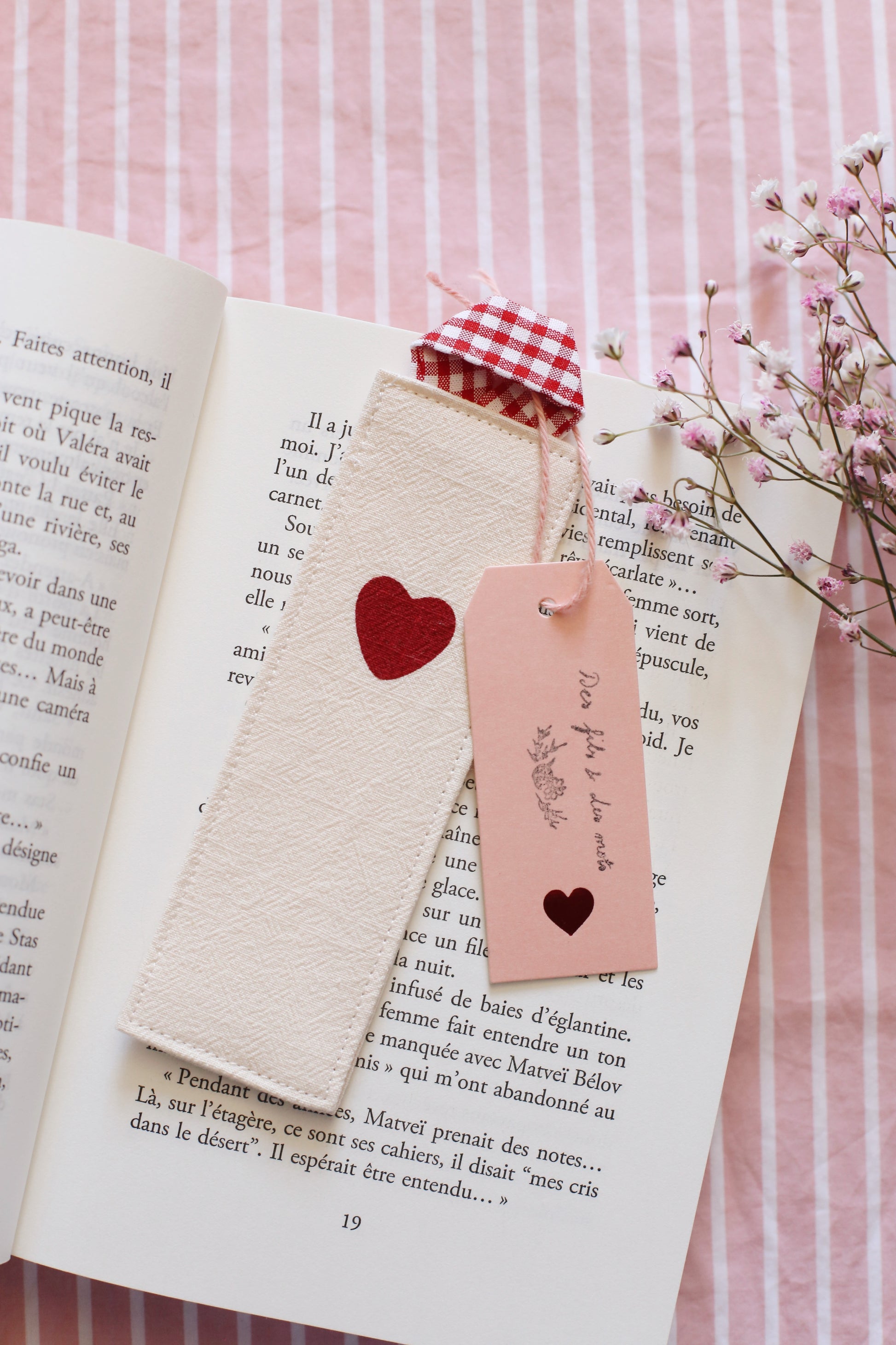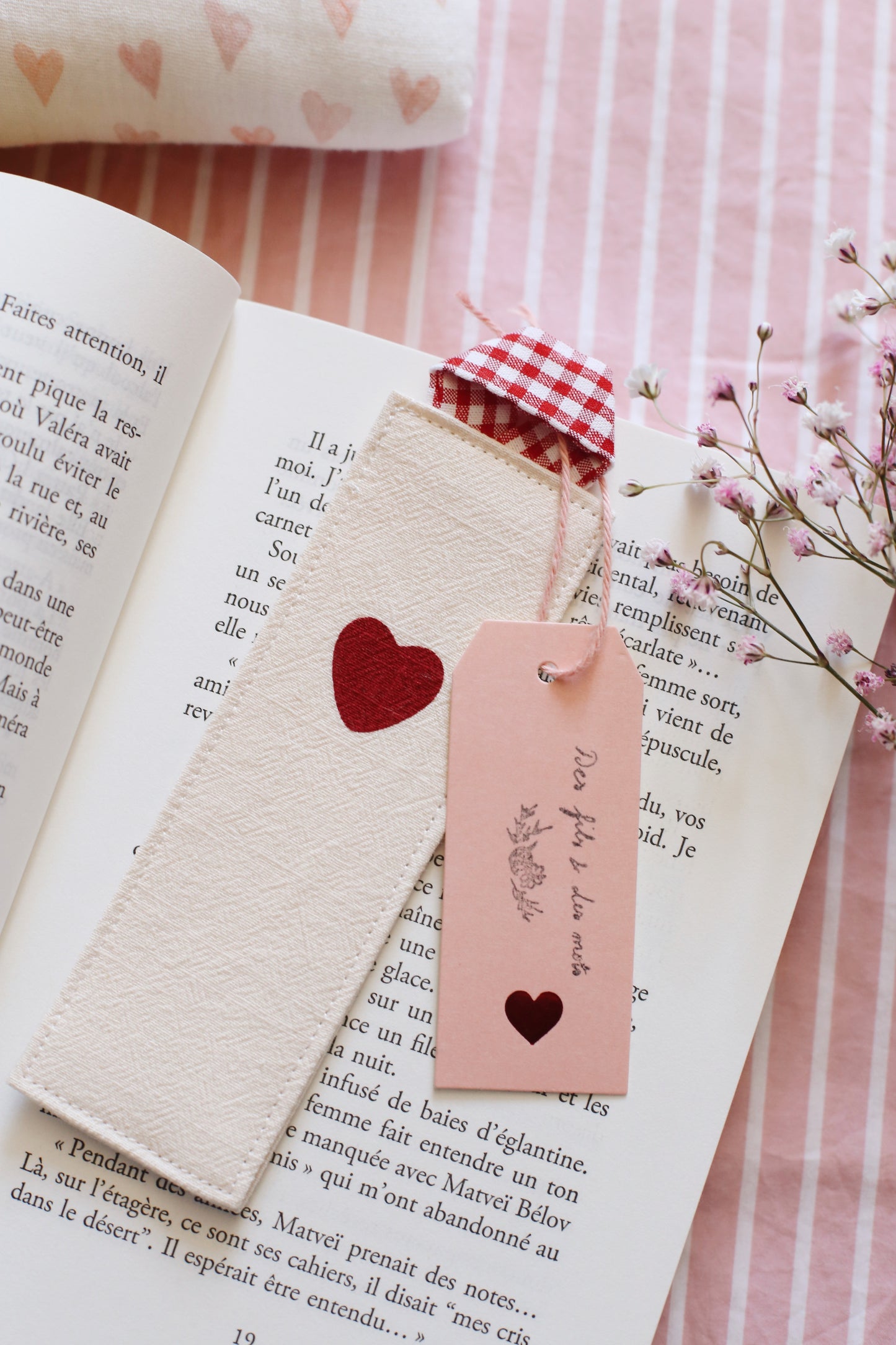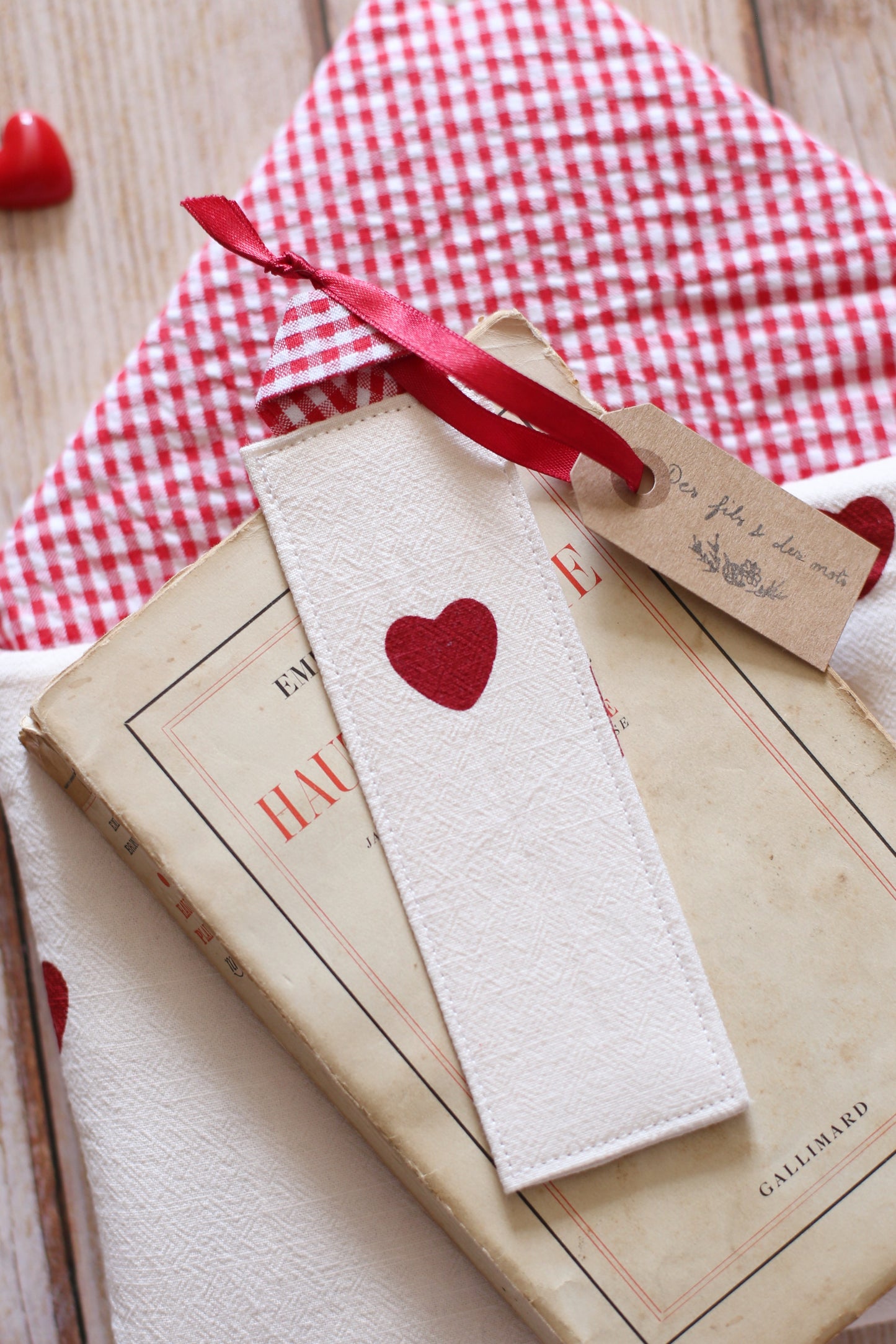 Bookmark made with certified organic cotton fabric. Insert in Oeko-Tex certified red gingham. Paper made in France with a fairly rigid weight is sewn inside for better support.