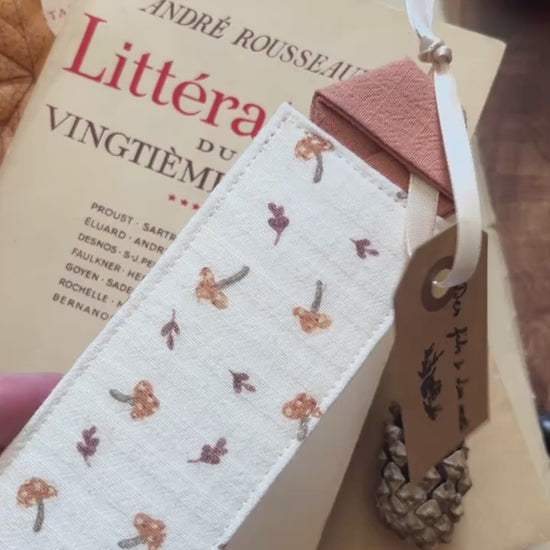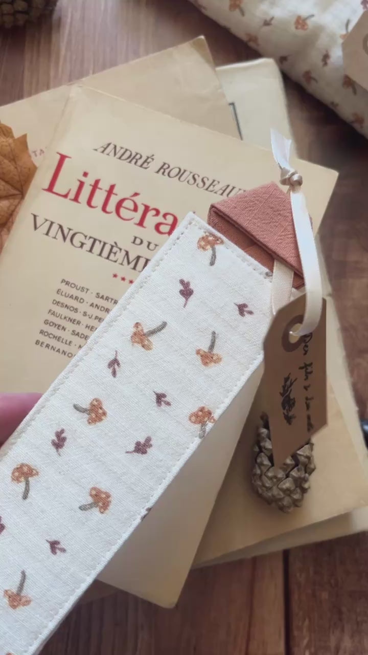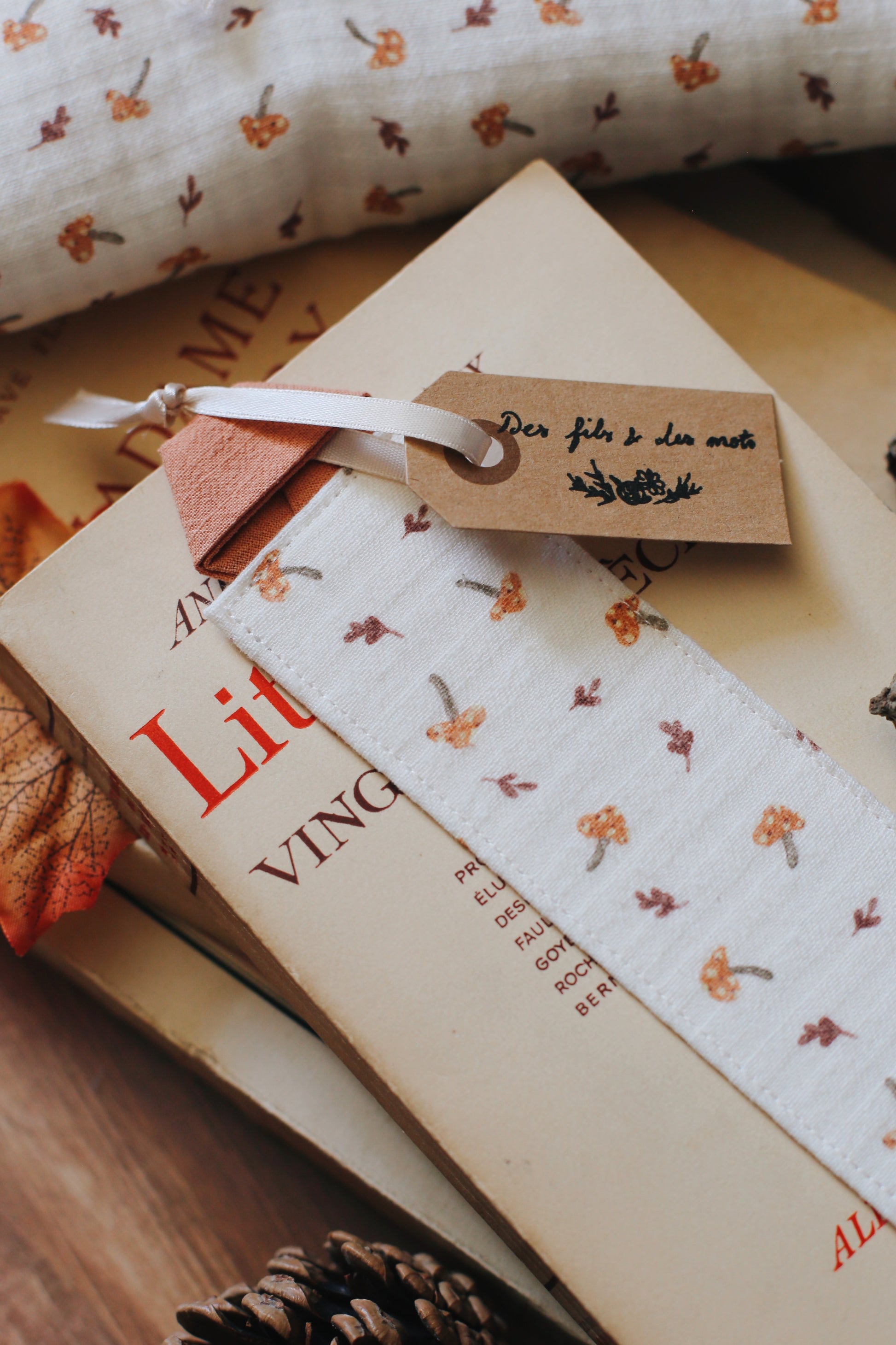 Marque-page réalisé avec du tissu en coton certifié oeko-tex. Un papier fabriqué en France de grammage assez rigide est cousu à l’intérieur pour un meilleur maintien.