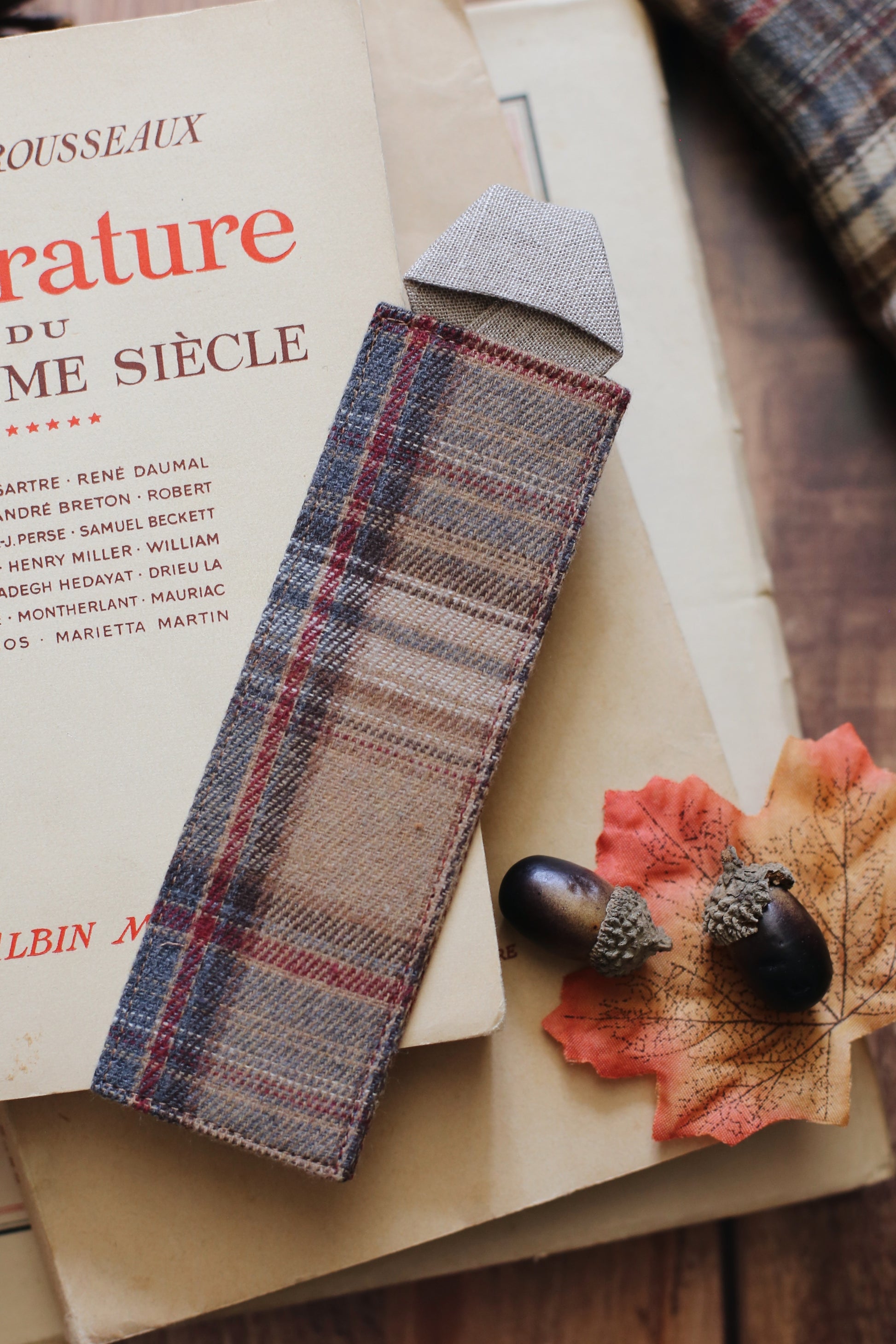 Marque-page réalisé avec du tissu en flanelle. Un papier fabriqué en France de grammage assez rigide est cousu à l’intérieur pour un meilleur maintien.