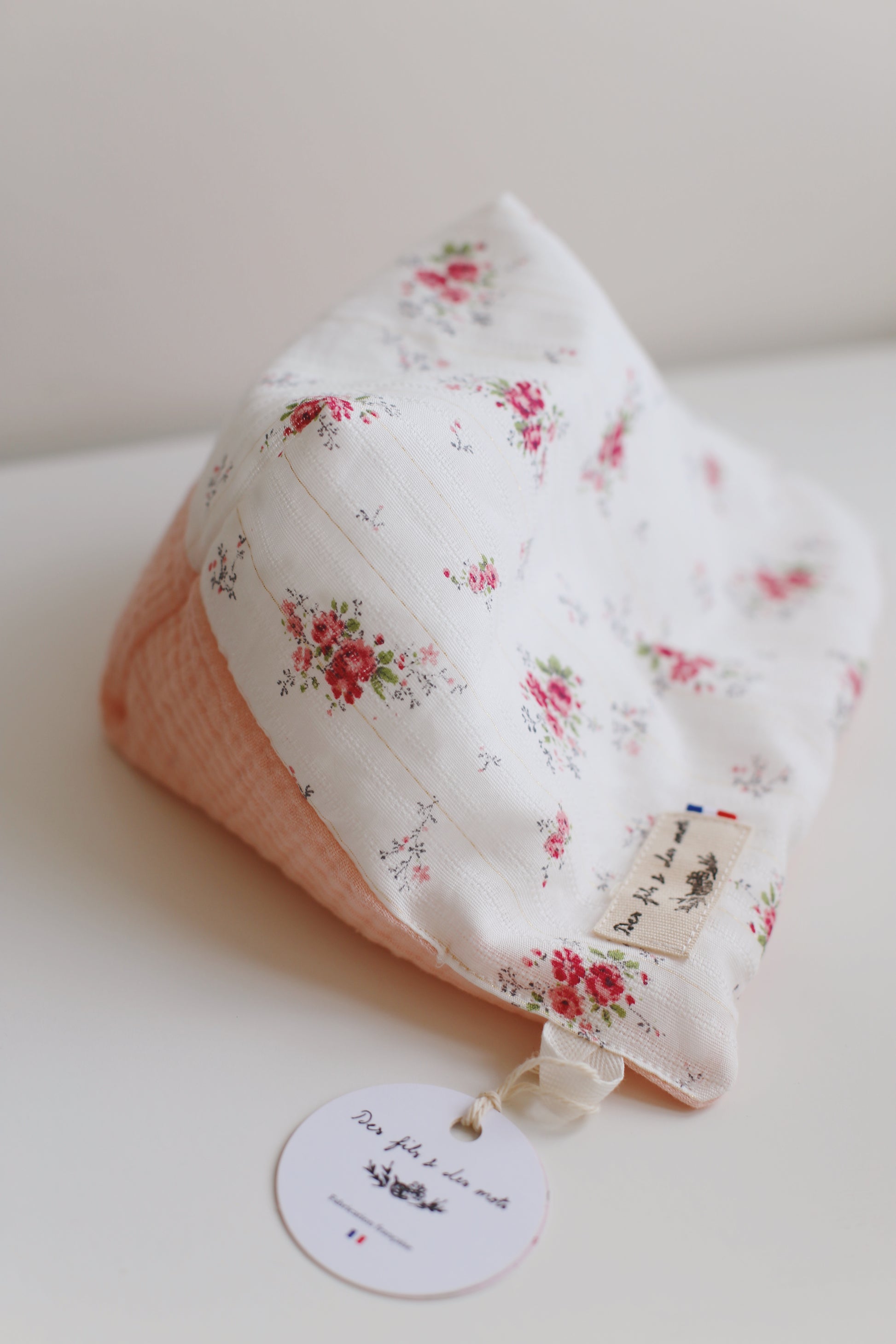 | 🧵 Matériaux | Tissu texturé en coton et lurex / double gaze de coton bio Billes de polystyrène ignifugées (France) Fil français EPV (Entreprise du Patrimoine Vivant) |