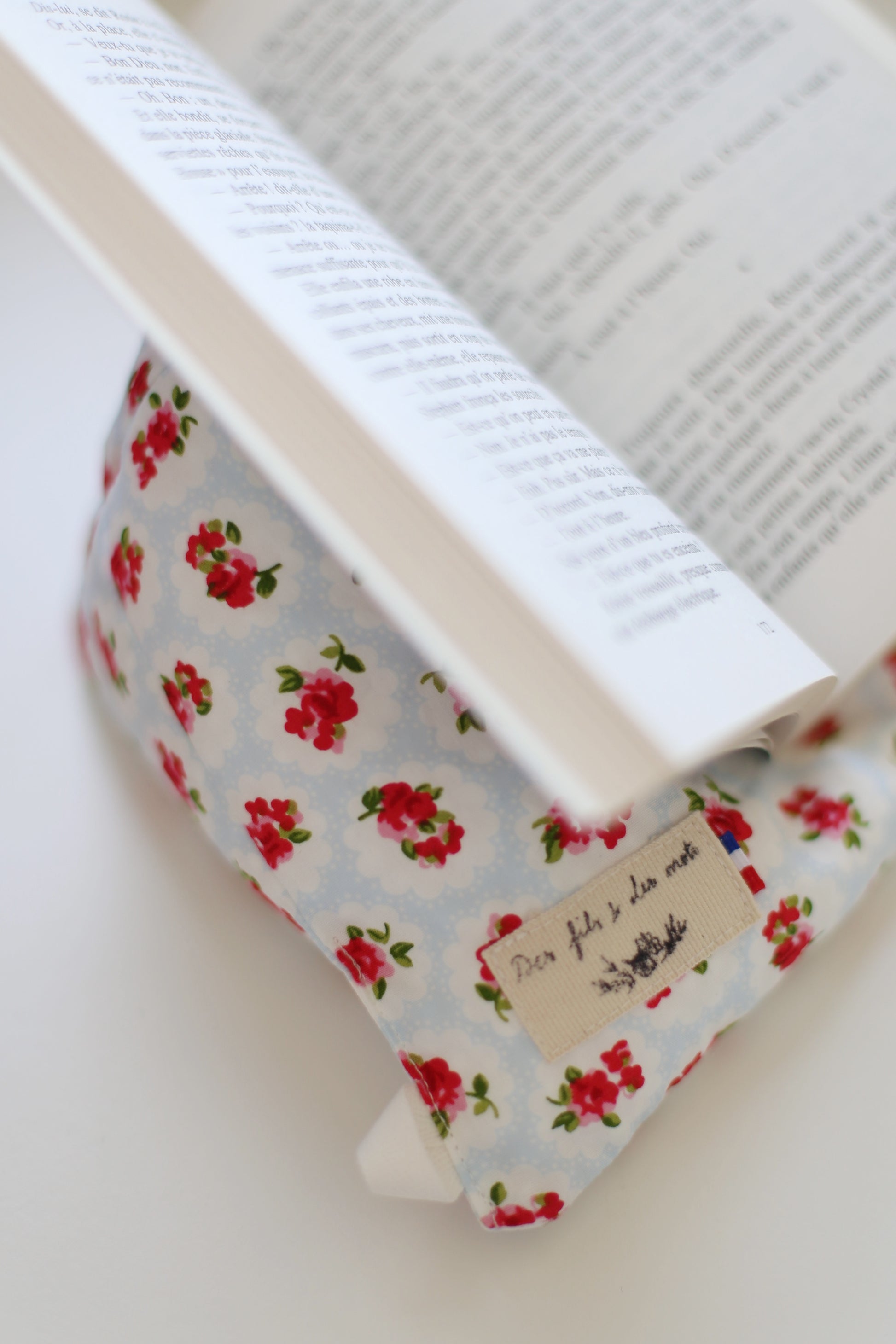 Ce support de lecture a été réalisé avec du tissu en popeline de coton certifié oeko-tex et cousu du fils français labellisé EPV. Des billes de polystyrène ignifugées et fabriquées en France sont glissées à l'intérieur de ce coussin de lecture.