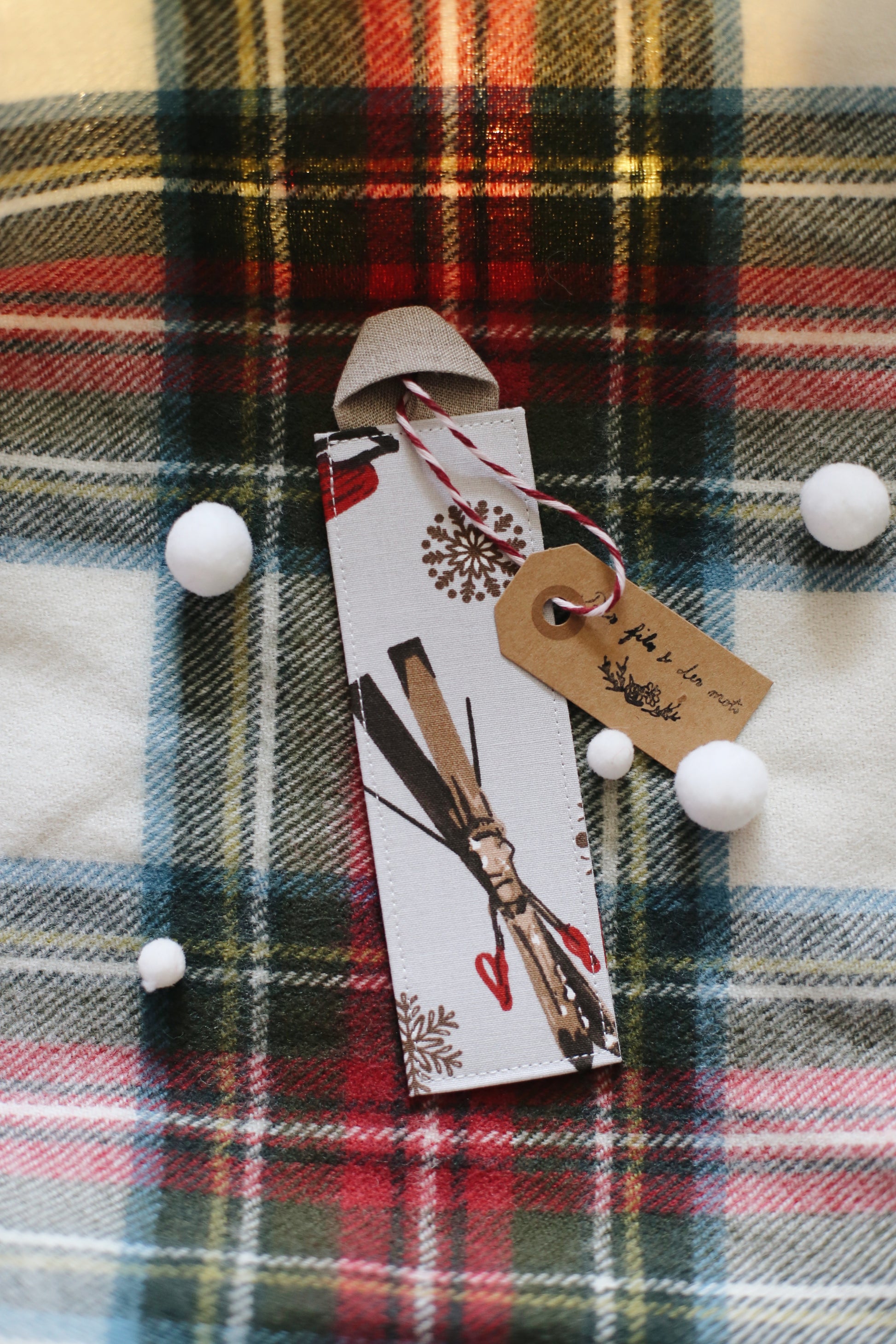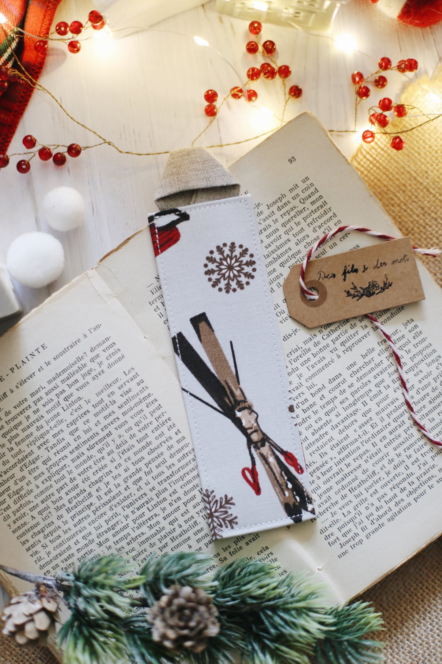 Marque-page réalisé avec du tissu certifié oeko-tex. Imprimé "Chalet". Un papier fabriqué en France de grammage assez rigide est cousu à l’intérieur pour un meilleur maintien.